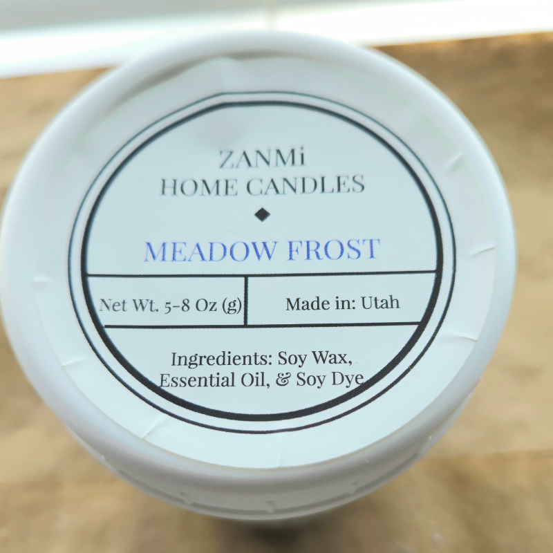 Our 8 oz Meadow Frost candle burns for up to 42 hours.